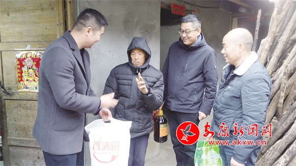“過(guò)年好。恭喜發(fā)財(cái)!”“萬(wàn)物呈祥榮盛世 九龍獻(xiàn)瑞慶良辰。這副對(duì)聯(lián)美得很。”“氣溫低,取暖注意安全。”漢濱區(qū)人社局派駐瀛湖鎮(zhèn)陽(yáng)坡村第一書(shū)記李大林和村黨支部書(shū)記晏真云一路邊和鄉(xiāng)親們打著招呼、送去祝福,邊叮囑著冬季取暖安全和森林防火等相關(guān)注意事項(xiàng),兩人徑直走到了村民晏世全家中。