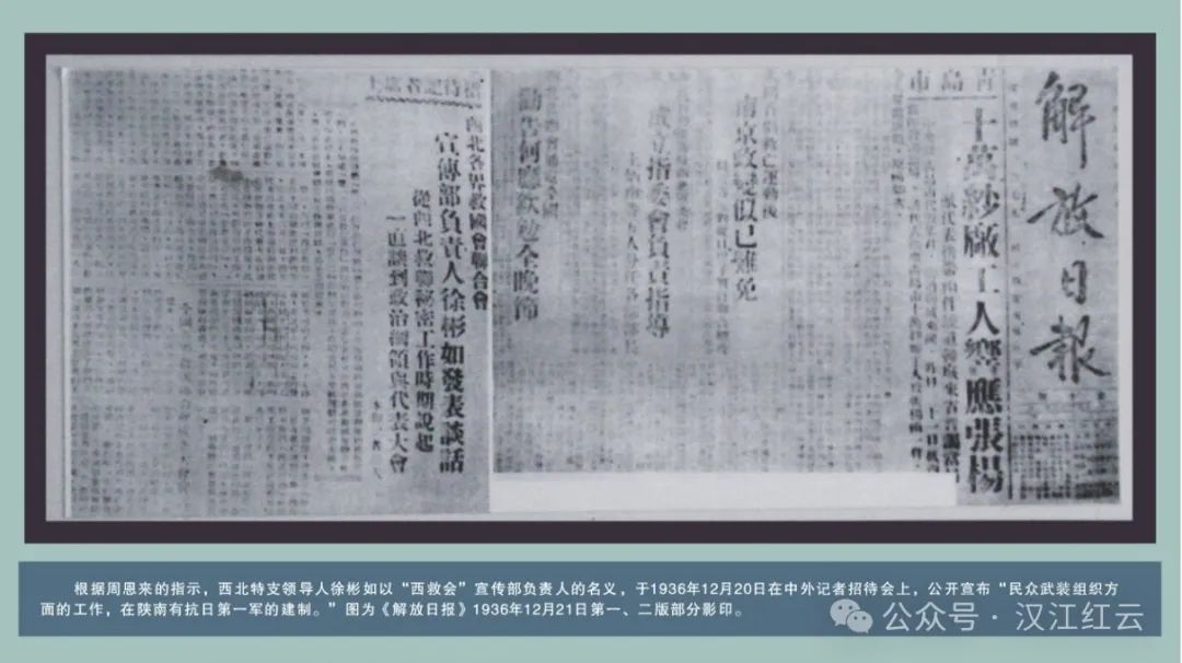 1936年8月13日,根據(jù)黨的指示,何振亞等人在紫荊河劉家大院正式宣告成立陜南人民抗日第一軍。何振亞任軍長(zhǎng),沈啟賢、杜瑜華任參謀長(zhǎng)。“西安事變”發(fā)生后,中共西北特支將陜南人民抗日第一軍交由中共中央代表羅瑞卿同志負(fù)責(zé)接收。1936年12月20日,根據(jù)周恩來同志的指示,中共西北特支領(lǐng)導(dǎo)人徐彬如以“西救會(huì)”名義在西安舉行中外記者招待會(huì)上公開宣布:“在陜南有抗日第一軍的建制”。至此,陜南抗日第一軍揚(yáng)名中外。