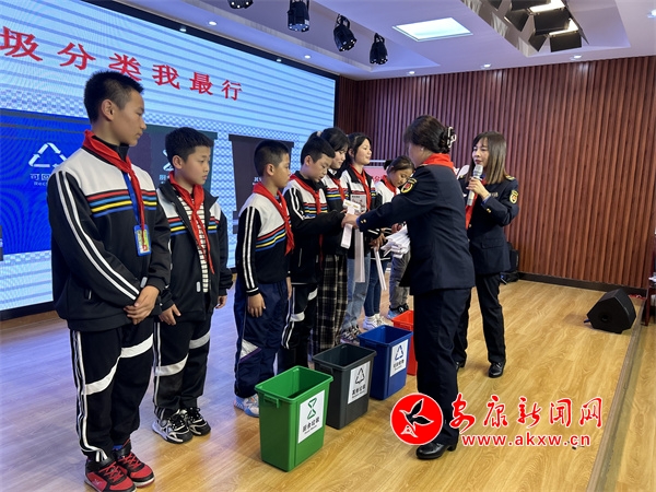 課堂上,城管執(zhí)法人員王雪通過(guò)圖文講解、知識(shí)問(wèn)答等方式,用通俗易懂的語(yǔ)言、生動(dòng)活潑的形式,向?qū)W生們講述了垃圾分類(lèi)的重要意義、如何正確分類(lèi)投放垃圾等知識(shí)。