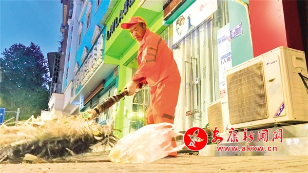 “要趕在早高峰之前完成第一次大掃,等天亮好了路上車多就掃不成了。大掃完還要在仔細(xì)打掃兩遍,差不多就到學(xué)生娃們上學(xué)的時(shí)間了,得去學(xué)校附近撿紙屑。”說完花子強(qiáng)加快了打掃的動作。