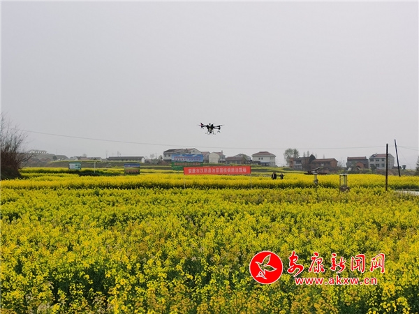 當(dāng)前正值油菜盛花期,也是油菜菌核病防治最佳時期,植保無人機(jī)對基地內(nèi)500余畝油菜開展以防治油菜菌核病為主的統(tǒng)防統(tǒng)治。