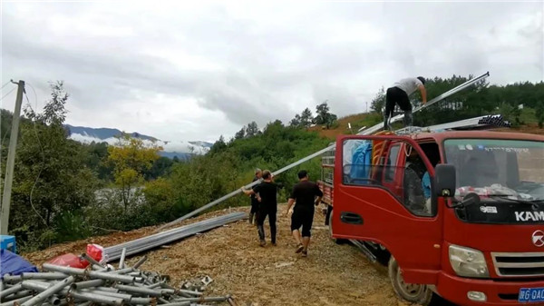 此次活動的主會場設立在澗池鎮(zhèn)洞河水庫,由于下雨積水,目前大型機械已經(jīng)進入場地展開排水工作,率先保障水、電、路暢通。搭建設備、材料也迅速運送進場,工作人員正在現(xiàn)場指導、規(guī)劃場景布置,預計明天可以完成舞臺搭建工作,投入到場下布置和彩排階段。
