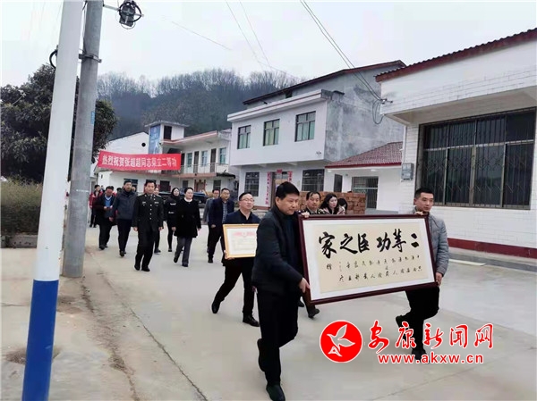 本網(wǎng)訊(通訊員 黃鴻)愛國奉獻(xiàn)在軍營,立功喜報(bào)穿家鄉(xiāng)。12月15日,伴隨著歡快喜慶的鑼鼓聲,漢陰縣委書記劉飛霞、縣人武部長吳杰、縣退役軍人事務(wù)局長王衛(wèi)等一行在雙乳鎮(zhèn)黨委、政府領(lǐng)導(dǎo)陪同下,為漢陰縣雙乳鎮(zhèn)南窯村榮立二等功的張超超家屬送去“二等功”牌匾、喜報(bào)和慰問金。