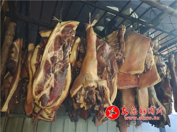 “我們那個豬是自己養(yǎng)的,臘肉是我們自己熏的,還有一部分豬肉是從農(nóng)戶手里收購的,收購回來也是用柏樹丫熏的,熏得特別好吃特別香。”尤昌艷說到。