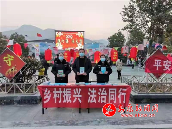 本網(wǎng)訊(通訊員 龔厚霞)2月15日,在漢陰縣城關(guān)鎮(zhèn)三元村部“2022猜燈謎 鬧元宵”現(xiàn)場(chǎng), “鄉(xiāng)村振興 法治同行”普法宣傳臺(tái)受到了群眾關(guān)注,由該鎮(zhèn)司法所、社治辦組織開(kāi)展的虎年春季大普法活動(dòng)由此拉開(kāi)了帷幕。