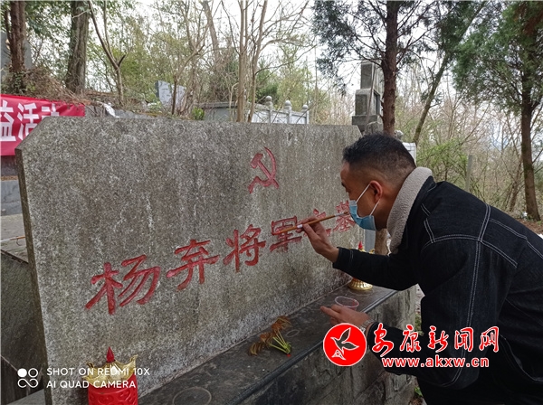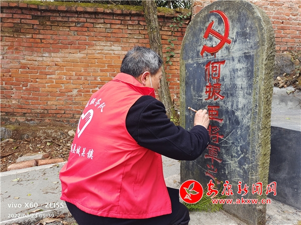 活動現(xiàn)場,該鎮(zhèn)10余名書法志愿者們向烈士鞠躬后,便小心翼翼地把墓碑上面的灰塵刷去,開始嚴(yán)肅認真地一筆一劃為烈士墓碑描摹碑文。每一筆,都刻畫了志愿者們對先烈們的沉痛追思;每一畫,都描摹著對新生活的無限感激。經(jīng)過3個多小時的努力,40余座革命烈士墓碑的字跡煥然一新,在陽光的照耀下,顯得格外清新醒目,志愿者們露出了欣慰的表情。