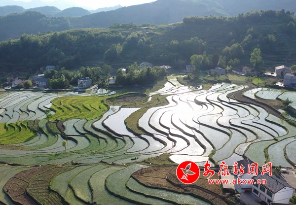 放眼望去,層層梯田披上了一襲綠色的新裝,微風吹過,秧苗輕輕搖擺,蕩漾起無限生機。在持續(xù)兩周的插秧期,村民們每天從早上六點一直忙到下午七點鐘才收工,“手把青秧插滿田”的農忙景象與大大小小形狀各異的水田,構成一幅詩意盎然的田園風光圖。