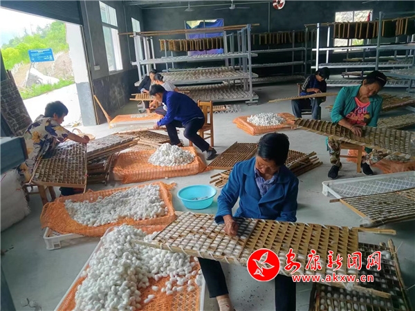 在新模式的引領(lǐng)下,該鎮(zhèn)明確了4名鎮(zhèn)領(lǐng)導(dǎo)、6名村干部和4名農(nóng)技專家,分別包抓推進(jìn)或技術(shù)指導(dǎo)1個(gè)村的蠶桑產(chǎn)業(yè)發(fā)展,鎮(zhèn)村干部主要負(fù)責(zé)管護(hù)過程中的組織協(xié)調(diào),確保每個(gè)環(huán)節(jié)都有人管、能管好;農(nóng)技人員則由村里統(tǒng)一聯(lián)系縣內(nèi)的蠶桑專家,定期到桑園和蠶室手把手指導(dǎo)病蟲害防治、蠶卵孵化、結(jié)繭吐絲等技術(shù)要點(diǎn)。此外,村里還從產(chǎn)業(yè)獎(jiǎng)補(bǔ)資金中擠出專項(xiàng)的管護(hù)經(jīng)費(fèi),組織人力定期開展桑園鋤草修枝、蠶室清潔消毒、蠶具安裝使用等管護(hù)作業(yè),實(shí)現(xiàn)了由粗獷式“放養(yǎng)”到精細(xì)化管護(hù)。