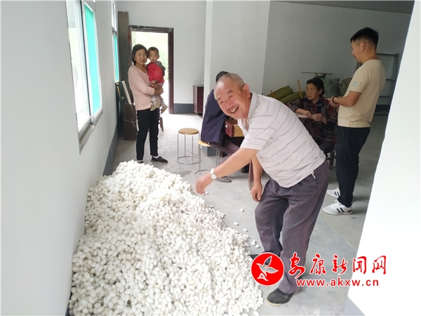 “我春季養(yǎng)了兩批蠶,今天出售第一批有3張,每公斤46元,賣了8200多元,我今年開春養(yǎng)的兩批次小蠶,還有五千多元的收入,這么好的效益,我以后還要繼續(xù)努力養(yǎng)蠶增加收入。”五坪村村民趙小燕笑著與大家分享他的“蠶桑賬”。
