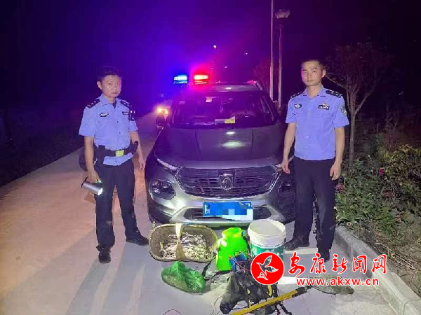 7月31日,漢陰公安雙乳派出所接到護河信息員反映夜間有人在轄區(qū)三同村段月河內(nèi)電魚的線索后,該所組織警力進行核查布控,23時許,民警發(fā)現(xiàn)有兩名嫌疑男子正在河道內(nèi)使用電瓶裝置以電魚方式進行非法捕撈。兩名嫌疑人發(fā)現(xiàn)民警后,立即丟棄電瓶裝置、漁獲物等作案工具逃離,經(jīng)過民警細致排查,現(xiàn)場查扣嫌疑車輛一臺,鎖定了犯罪嫌疑人。