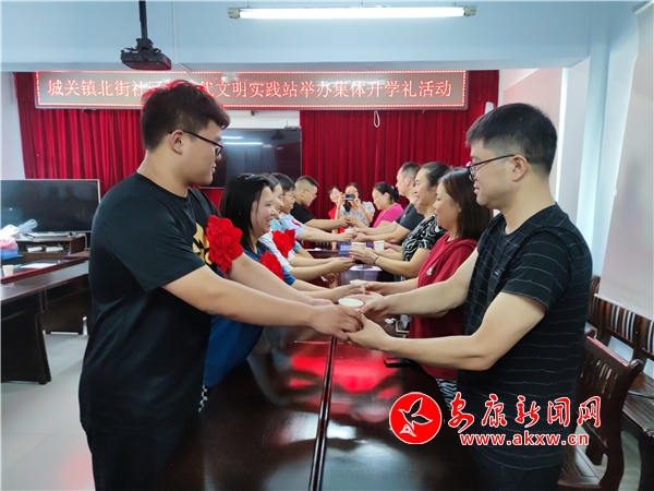 8月15日,漢陰北街社區(qū)舉辦集體升學(xué)禮,引導(dǎo)群眾做新民風(fēng)建設(shè)的踐行者,帶頭拒絕“升學(xué)宴”“謝師宴”。(通訊員 姚鑫) Rif安康新聞網(wǎng)