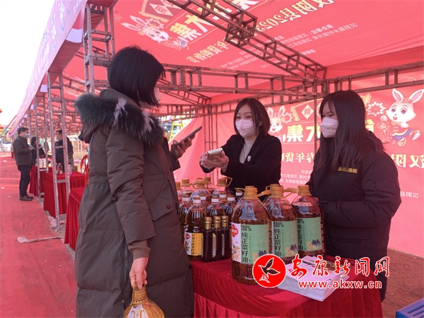 活動(dòng)現(xiàn)場,伴隨著喜慶的音樂聲,攤位上擺滿了各種各樣的年貨,洋溢著濃濃的年味。市民們穿梭其中,漢陰炕炕饃、漢陽蒸盆子、純正菜籽油、臘肉和香腸、年節(jié)飾品等60余種商品齊聚這里,吸引著過往消費(fèi)者駐足品嘗、選購。