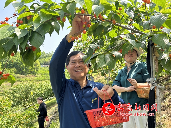 除了慕名而來的游客,村民們也忙著在櫻桃林里采摘櫻桃,享受著收獲的喜悅。因個頭大、色澤艷、果肉厚、口感佳,月河村的櫻桃深受消費者青睞,這里的櫻桃已成為當?shù)卮迕竦挠忠辉鍪罩赂缓寐窂健?span style="display:none">VLB安康新聞網(wǎng)