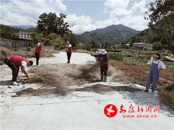 在漢陰縣城關(guān)鎮(zhèn)三元村七組村民吳發(fā)金家的油菜田里,他將成熟的油菜鋪在墊子上,家人用手中奮力揚起的連枷,一下下錯落地砸在鋪好的油菜上,伴隨著嘩嘩聲響,油菜籽紛紛從油菜莢中脫落而下,三人分工協(xié)作地忙碌著。但身后還剩下一多半油菜“躺在”田里,直到見到搶收“突擊隊員”的到來,才露出了如釋重負(fù)般的笑容。“感謝你們來給我?guī)兔,今天不乘著大太陽,把油菜收完,明天開始又是幾天連陰雨,我這點油菜籽怕都要生芽子了,就糟蹋啦!”吳發(fā)金一邊忙著手里的活,一邊咧著嘴對前來幫忙的“突擊隊員”連聲感謝到。