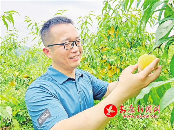 “我是從朋友圈里看到,聽說江河村這有一個黃桃園,今天沒啥事,特意過來看看,這兒的桃子還不錯,吃著挺甜,水分還是挺足的,我今天買了十斤,準(zhǔn)備自己吃,給家人也嘗一嘗。”游客孫女士一邊挑選黃桃一邊拿起手機拍起了視頻,玩得不亦樂乎。