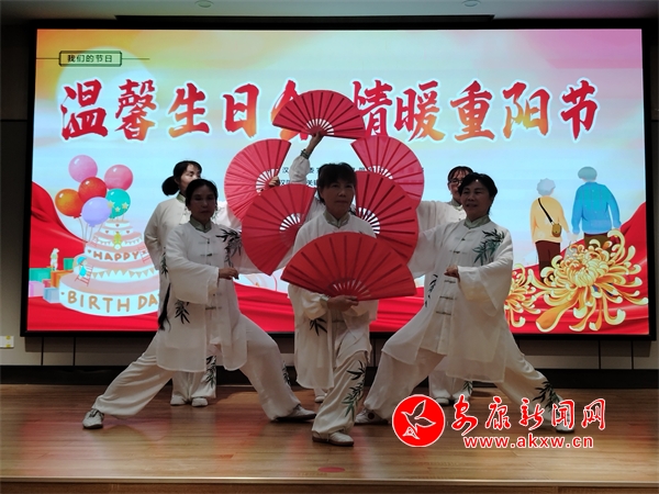 演出在優(yōu)美的舞蹈《花樣功夫扇》中拉開了帷幕,先后上演了多個老年人喜聞樂見的節(jié)目,清脆悅耳的歌聲、輕松歡快的舞蹈,老人們聽得入神,看得喜悅,整個活動中,掌聲雷動,笑聲不斷。壽星們在歡快的歌聲中共同許下美好的生日愿望,社區(qū)干部為壽星們戴上生日皇冠,將精心準(zhǔn)備的蛋糕、禮品分送到每位老人手上,甜蜜也蔓延在老人們的臉上。