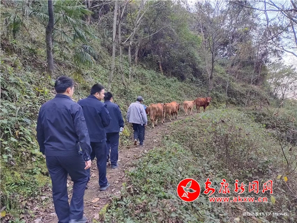 經(jīng)了解,羅某于11月14日中午將5頭耕牛趕放到距家約幾公里的山林里面后,就回家忙農(nóng)活了,耕牛無人看管,11月14日18時,羅某上山看牛還在山林中,由于天色已晚,山路崎嶇陡峭,羅某就未將牛趕回家,而是散放至山林中,第二天中午羅某上山發(fā)現(xiàn)牛不見了,經(jīng)自行找尋無果,11月16日,心急如焚的羅某懷疑牛被人盜走,報警求助。了解情況后,民警立即對現(xiàn)場進行了勘查及走訪,初步推斷牛應(yīng)該是自行走失了,立即組織13名民輔警、兩輛警車及無人機等設(shè)備,開展尋找,并聯(lián)系村干部,讓村干部發(fā)動群眾幫忙尋找耕牛。經(jīng)過兩天搜尋,11月17日,民輔警在深山一處樹林中找到了走失的5頭耕牛。見耕牛失而復(fù)得,羅某臉上笑開了花,對派出所民輔警連連致謝。