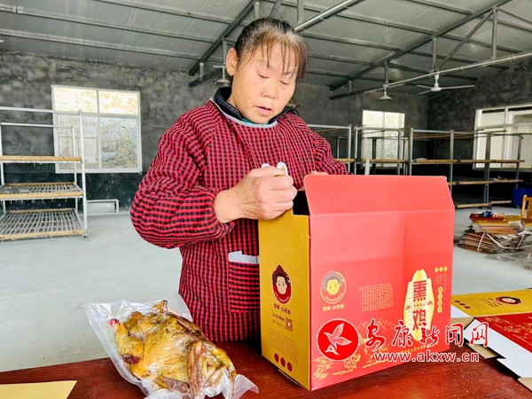 隨著熏雞產(chǎn)業(yè)的蒸蒸日上,合作社用工人數(shù)也在不斷增加,越來越多周邊村民前來務工。今年57歲的龍佰香便是其中的一員,夏天養(yǎng)蠶,冬天制作熏雞,像她這樣的務工人員還有20多個人。