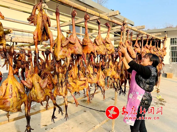 “市場反應非常好,產(chǎn)品供不應求。今年冬月以來,我們早做準備,擴大生產(chǎn)規(guī)模,修建了臘雞生產(chǎn)車間,引進了烘干設備,計劃生產(chǎn)臘雞5000只,預計銷售額將達到80萬元。”共同村經(jīng)濟合作社負責人章漢說。