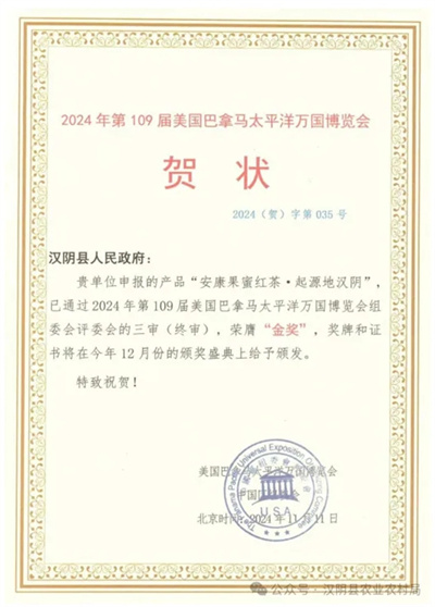 1月8日,第十一屆世界華商論壇在泰國(guó)曼谷舉行,會(huì)上揭曉2024年第109屆美國(guó)巴拿馬太平洋萬(wàn)國(guó)博覽會(huì)獲獎(jiǎng)名單。“安康果蜜紅·起源地漢陰”品牌在眾多參展產(chǎn)品中脫穎而出,榮獲金獎(jiǎng)!這一榮譽(yù)彰顯了安康果蜜紅的高品質(zhì)和獨(dú)特性,更使安康富硒茶產(chǎn)業(yè)發(fā)展得到國(guó)際認(rèn)可。同時(shí),漢陰茶葉企業(yè)家馮衛(wèi)平榮獲杰出表現(xiàn)獎(jiǎng)。