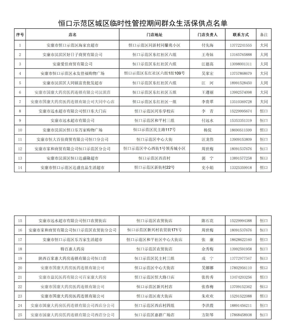 附件:恒口示范區(qū)臨時性管控期間群眾生活保供點名單