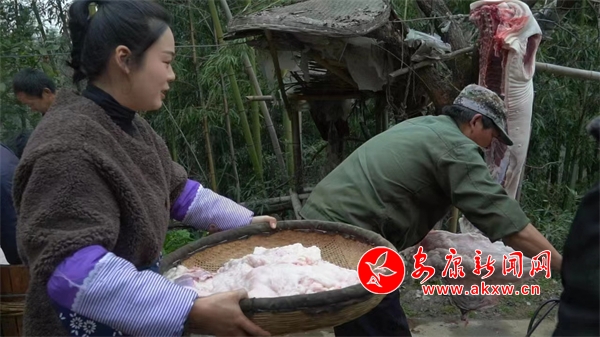 就這樣,抖音號(hào)“菲兒姑娘”出發(fā)啦。她平時(shí)負(fù)責(zé)策劃及出鏡。在2023年2月9日的采訪中,楊菲對(duì)華商報(bào)記者說:“我們的視頻一般是從食材的選取開始拍,比如炒臘腸,每個(gè)產(chǎn)品都是經(jīng)過精挑細(xì)選,也都是選取當(dāng)?shù)剞r(nóng)戶自己養(yǎng)殖的豬,整個(gè)制作過程也都會(huì)拍進(jìn)視頻里,就會(huì)不斷有粉絲朋友詢問購(gòu)買臘腸、臘肉。”2022年11月份,僅用半個(gè)月時(shí)間該賬號(hào)幫村民賣完了5000余斤豬肉,還有不少客戶已經(jīng)在預(yù)定明年的臘肉,這讓附近的農(nóng)戶信心倍增。