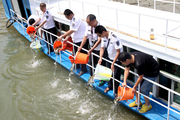 漢江喜河庫區(qū)舉行增殖放流活動(dòng) 放流魚種20余萬尾