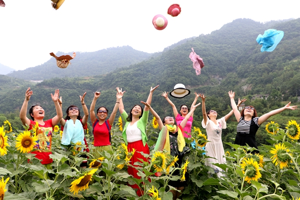 葵花競(jìng)相開(kāi)放,吸引眾多游客前往,一睹美景。據(jù)嵐皋縣城關(guān)鎮(zhèn)茅坪村支書(shū)陳世貴介紹,自開(kāi)展精準(zhǔn)脫貧工作以來(lái),茅坪村因戶施策,為10戶貧困戶流轉(zhuǎn)土地100畝種植油葵,預(yù)計(jì)每畝收益可達(dá)到2400元,并計(jì)劃從明年起,再將其打造成農(nóng)業(yè)觀光旅游項(xiàng)目,屆時(shí),葵花園的收益將大幅提高。wiM安康新聞網(wǎng)