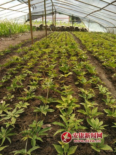 說到蔣家關的白芨,我很快想到了一個熟悉的名字“王富國”,在《陜西日報》和《安康日報》多次看到過他“兩分地收入10萬元”的相關報道,今年他還當選了安康市第四屆人大代表。“這就是王富國家”,伍支書指著面前三間兩層還未粉刷的小洋樓向我們介紹。他的房前屋后都是塑料大棚,我們在大棚里見到了王富國,今年40多歲,消瘦的國字臉上那雙睿智的雙眼顯得與眾不同。大棚里密密麻麻的白芨瘋長著,緊挨著的一個棚里,布滿了“七葉一枝花”小苗,看到我們對白芨很有興趣,他便如數家珍地諞了起來。