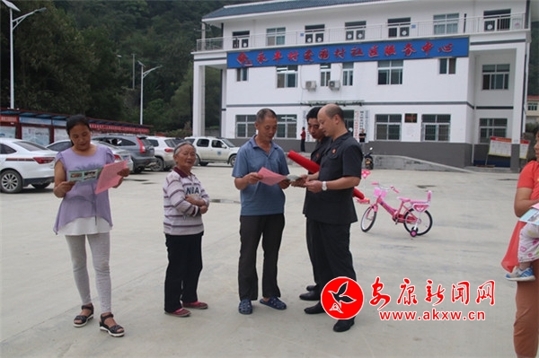 為更好地達到宣講效果,宣講團成員提前到周邊移民搬遷安置點、村組院落發(fā)放掃黑除惡專項斗爭、平安建設、“無訟新村”等宣傳單共計300余份,吸引60余名群眾參與到宣講活動現(xiàn)場。