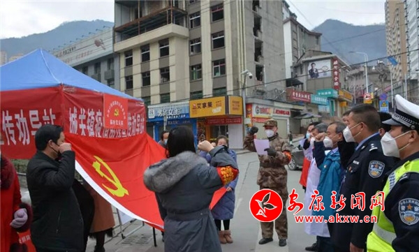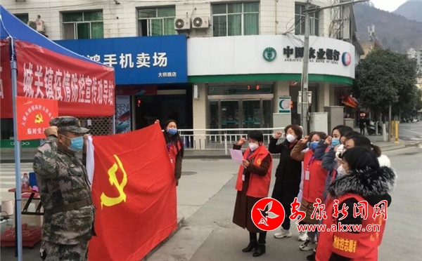 “我宣誓,我志愿加入新型冠狀病毒肺炎阻擊戰(zhàn),堅(jiān)決貫徹習(xí)近平總書(shū)記關(guān)于疫情防控重要指示精神,全面落實(shí)黨中央和省市縣委決策部署,聽(tīng)從指揮,服從安排,義無(wú)反顧,不懼困難,堅(jiān)守陣地,積極工作,為全面打贏疫情防控阻擊戰(zhàn)獻(xiàn)出全部力量!”在城關(guān)鎮(zhèn)17個(gè)臨時(shí)黨支部,紅色黨旗飄揚(yáng),黨員舉起右手宣誓,志愿為本次疫情防控狙擊戰(zhàn)貢獻(xiàn)出全部力量。