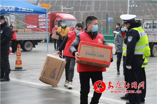 本網(wǎng)訊(通訊員 廖霖 龔海濤)“疫情期間,你們?yōu)槲覀儽q{護航,一定要保護好自己,你們辛苦了!”1月14日上午,嵐皋縣農(nóng)業(yè)農(nóng)村局、縣新型職業(yè)農(nóng)民協(xié)會向安嵐高速公路出入口和佐龍的疫情防控卡點一線,捐獻口罩12000只、防護服600套、酒精濕巾2400袋,送去了總價值16000余元的防疫用品,緩解抗“疫”燃眉之急,以實際行動為疫情防控一線工作者撐起一把“防護傘”。