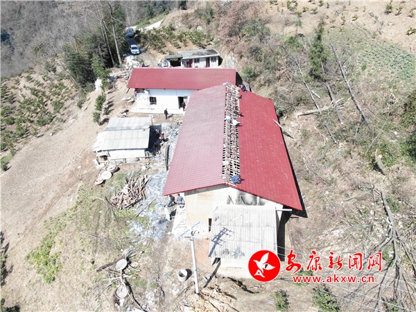 3月16日,無(wú)人機(jī)拍攝的改造中的嵐皋縣大道河鎮(zhèn)白果坪村農(nóng)村土坯房。
