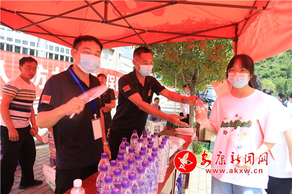 愛心送考,退伍老兵不遜色。早上6點左右,退役老兵志愿者們有條不紊地忙碌著,搬水、搭建臨時志愿服務(wù)站,在嵐皋中學(xué)校門口設(shè)置了愛心志愿服務(wù)點,為考生和家長服務(wù)。為了更好地服務(wù)考生,每一名退役軍人對車輛進行了嚴(yán)格消毒和檢查。退役老兵志愿服務(wù)愛心接送車隊從縣城出發(fā),根據(jù)提前規(guī)劃的路線沿途接送城區(qū)內(nèi)的高考考生。