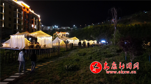假期第一天,記者來(lái)到位于城關(guān)鎮(zhèn)羅景坪社區(qū)的嵐谷森野露營(yíng)基地,只見(jiàn)藍(lán)天白云下,統(tǒng)一的白色帳篷在寬敞的草地上依次排開(kāi),游樂(lè)設(shè)施散布其間,人們或躺或臥,或游戲或拍照,一派快樂(lè)、安逸的假日氛圍。夜幕降臨,點(diǎn)點(diǎn)彩燈為夜晚的露營(yíng)基地增添了一抹童話色彩,大家吹著徐徐晚風(fēng),吃著各色美食,享受著與家人朋友暢談暢飲的歡樂(lè)時(shí)光。