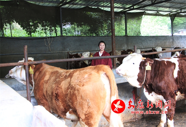 陳景田吃苦耐勞,熱情爽朗。19歲時,她離開家鄉(xiāng)外出打工,學過理發(fā),洗過碗,端過盤子,之后又回到嵐皋縣城賣床上用品。網(wǎng)購興起后,產(chǎn)品不好賣了。2014年初,陳景田和丈夫一合計,干脆拿著做生意攢下的幾十萬開始修圈舍、修路、架電、修廠房,買下村民的12頭牛,正式開啟了她的“牛姐征程”。