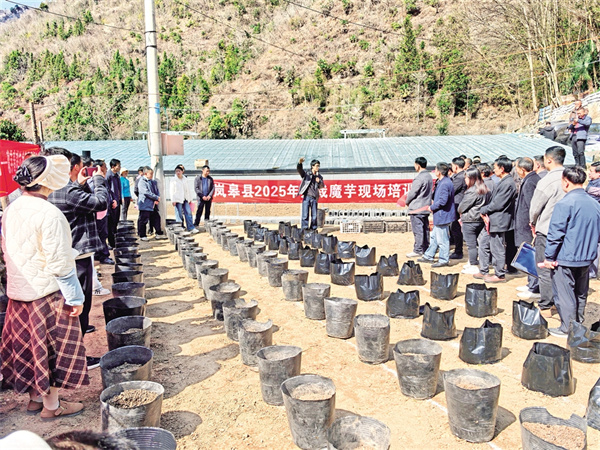 本網(wǎng)訊(通訊員 張?zhí)毂?胡興建)近日,在嵐皋縣藺河鎮(zhèn)蔣家關(guān)村五組藺佳源魔芋種植基地,一個個黑色塑料種植袋間隔有序地整齊擺放,隨著專家教授的現(xiàn)場講解,這種袋栽魔芋的新模式,讓前來參加2025年嵐皋縣魔芋現(xiàn)場培訓會的百余名干部群眾眼前為之一亮。