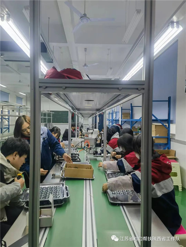 為了探索蘇陜協(xié)作產(chǎn)業(yè)發(fā)展新路徑,聯(lián)絡(luò)組依托安康蘇陜誠銘電子科技有限公司在嵐皋縣職教中心建設(shè)并投運(yùn)了校企合作示范基地和“勞動教育+職業(yè)體驗(yàn)”研學(xué)基地,從而嘗試出了蘇陜協(xié)作在產(chǎn)教融合領(lǐng)域的一種新模式。