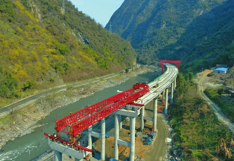 安康至嵐皋高速公路建設(shè)順利推進(jìn)。該高速公路是國家高速公路網(wǎng)G69銀百線的組成部分。圖為該高速公路八標(biāo)段正在架設(shè)長2公里的嵐河高架橋。陜西日報記者 巨躍先攝……