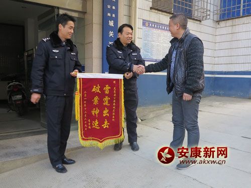安康新網(wǎng)訊(通訊員 汪華平)12月29日,嵐皋縣城關(guān)鎮(zhèn)居民李吉瑞、常照兵分別將寫有“雷霆出擊 破案神速”、“神警雄風(fēng) 犯罪克星”錦旗送到嵐皋縣公安局……
