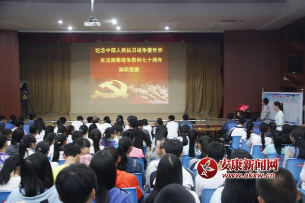 安康新聞網(wǎng)訊 9月11日晚上,寧陜中學(xué)階梯教室燈光明亮、人頭攢動(dòng),中國人民抗日戰(zhàn)爭暨世界反法西斯戰(zhàn)爭勝利70周年知識(shí)競賽正在有序進(jìn)行,來自高二、高三年級(jí)組文科班全體師生三百人參與此活動(dòng)。