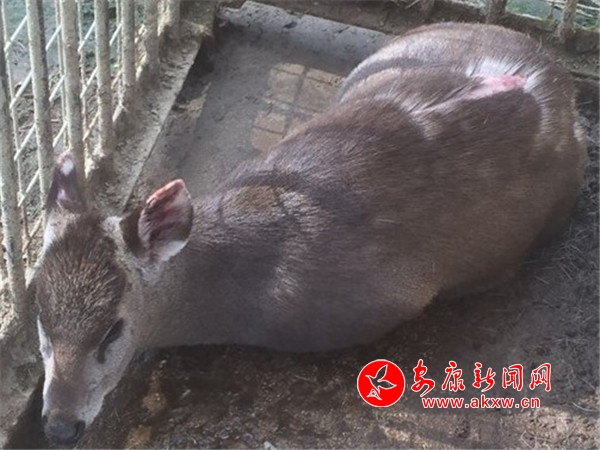 據(jù)了解,當(dāng)時四畝地村村民茍興成正沿著河邊往家走,突然發(fā)現(xiàn)有一動物在河里掙扎,仔細(xì)一看好像是一頭“青麂子”掉河里了,老茍立即喊了幾個村民一起將它救上了岸,村民們發(fā)現(xiàn)它受傷了,于是報了警,附近寧陜榮庚生物科技有限公司林麝養(yǎng)殖場的工作人員得知消息后拿來了養(yǎng)殖場的工具,對“青麂子”進行了暫時安置。