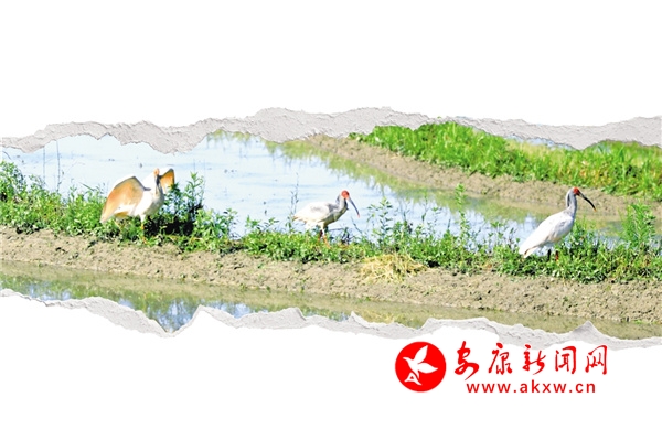 “你看,那里有兩只朱鹮在覓食。”4月21日,順著寧陜縣城關(guān)鎮(zhèn)寨溝村黨支部書記張善紅指引方向望去,兩只朱鹮正在蓮藕田里覓食,不遠處幾名群眾正在田里忙著勞作,兩者互不打擾,一幅人與朱鹮和諧相處的景象。