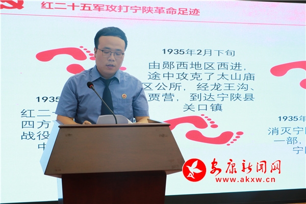 此次黨日活動是寧陜縣檢察院結(jié)合常態(tài)化開展“尋訪革命舊址 保護革命文物 傳承革命精神”活動,以講解寧陜紅色故事,講述辦案體悟為主要內(nèi)容,圍繞尋訪環(huán)節(jié)中干警的親身經(jīng)歷、親身感受結(jié)合公益訴訟檢察工作進行演講,從而在尋訪中體悟黨和人民英勇奮斗的光榮歷史,及時發(fā)現(xiàn)案件線索;在辦案中加深對革命傳統(tǒng)和革命文化的體悟,強化做好保護革命文物工作的政治自覺、法治自覺、檢察自覺;在體悟中傳承紅色基因、感受信仰力量,把活動成效轉(zhuǎn)化為對黨忠誠、履職奉獻、擔(dān)當作為的實際行動。