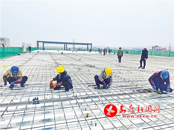在寧陜縣飛地園區(qū)標準化廠房二期第3批次項目建設(shè)工地,工人在進行第三層封頂。
