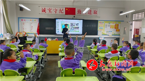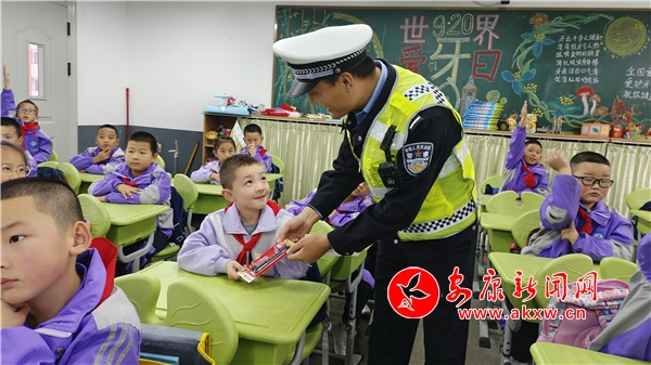 最后,宣傳民警鼓勵(lì)學(xué)生“交通安全、從我做起”,從小養(yǎng)成遵守交規(guī)、文明出行的良好習(xí)慣。把學(xué)到的交通安全知識(shí)帶回家,發(fā)揮“小手拉大手”的紐帶作用,當(dāng)好交通安全的宣傳員和監(jiān)督員,監(jiān)督家長遵守交通法規(guī),共同維護(hù)道路交通秩序,做到安全文明出行。