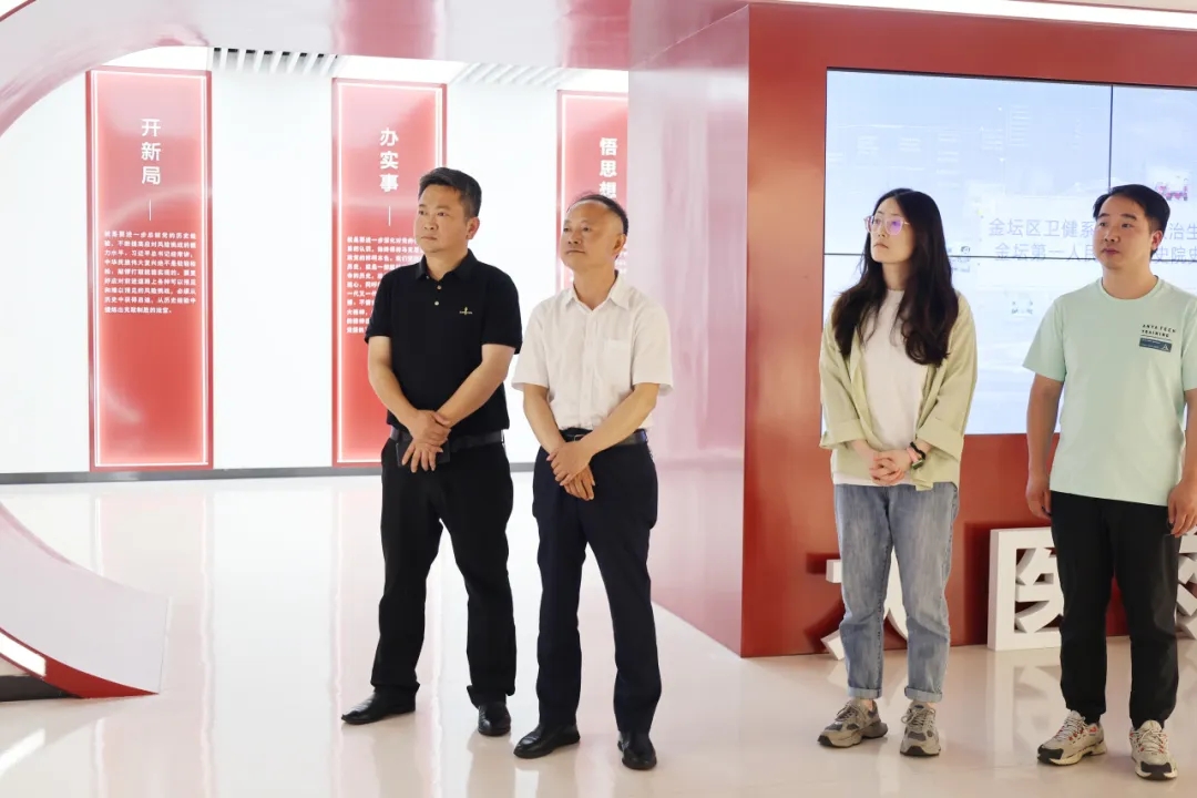 在院領(lǐng)導(dǎo)的陪同下,賈開(kāi)朗一行參觀了醫(yī)院的門(mén)診醫(yī)療街。寬敞明亮的診療環(huán)境,先進(jìn)的設(shè)施設(shè)備,各類(lèi)科室布局合理給賈書(shū)記一行留下深刻印象。隨后又參觀了醫(yī)院黨史院史館,這里陳列著醫(yī)院的發(fā)展歷程、重要事件和杰出人物,記錄著醫(yī)院從建院初期的艱辛起步,到如今發(fā)展成為一所具有較大影響力的現(xiàn)代化醫(yī)院的歷史變遷。
