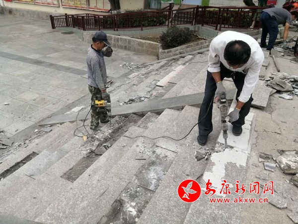 寧陜:修復(fù)破損路面 繪制城市文明底色