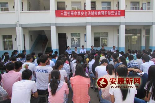 安康新網(wǎng)訊 (通訊員 周玲)5月12日,平利縣三陽(yáng)鎮(zhèn)組織派出所、司法所、食安所、衛(wèi)生院四單位走進(jìn)三陽(yáng)中學(xué)開(kāi)展安全法制急救宣傳教育活動(dòng)講座。
