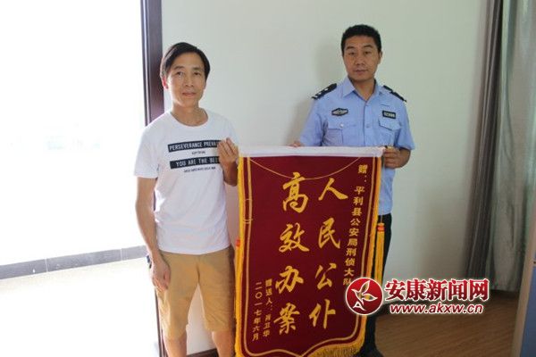 6月26日,肖某將一面印有“人民公仆 高效辦案”的錦旗送到民警手中,對(duì)民警主動(dòng)工作,快速破案,及時(shí)為其挽回經(jīng)濟(jì)損失表示感謝。